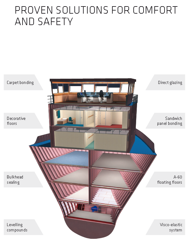 As a world leader in the development of bonding, sealing, damping and reinforcing products, Sika is supplier and partner to the global marine industry, providing not only adhesive and sealing systems, but also a range of acoustic and flooring systems for the shipbuilding industry. Sika is represented with its own subsidiaries in all shipbuilding countries, thus ensuring first class order handling, delivery, application development, technical and commercial support, wherever our customers operate.